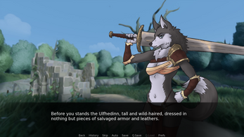 For substantive feedback, there's a line during the fight with our first ulfheddin (I understood that reference :) ) along the lines of "This is moving way too fast, lady!" and I... kinda agree with protag-kun there. I know we're still in the proof of concept stage where a lot of things are subject to change, and there's definitely a desire to get to the titties ASAP to keep players' attention, but the pacing could definitely be a bit more refined in the intro.