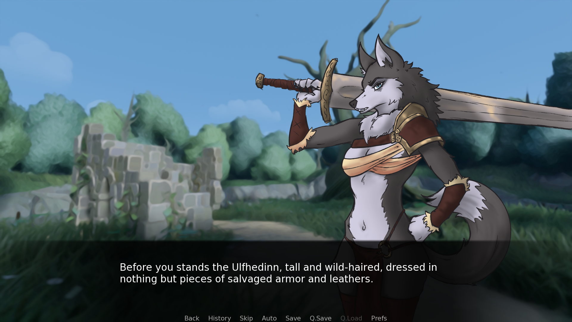 This visual novel follows the misadventures of a battle-weary mercenary and his growing harem of diverse wolf-girls.
